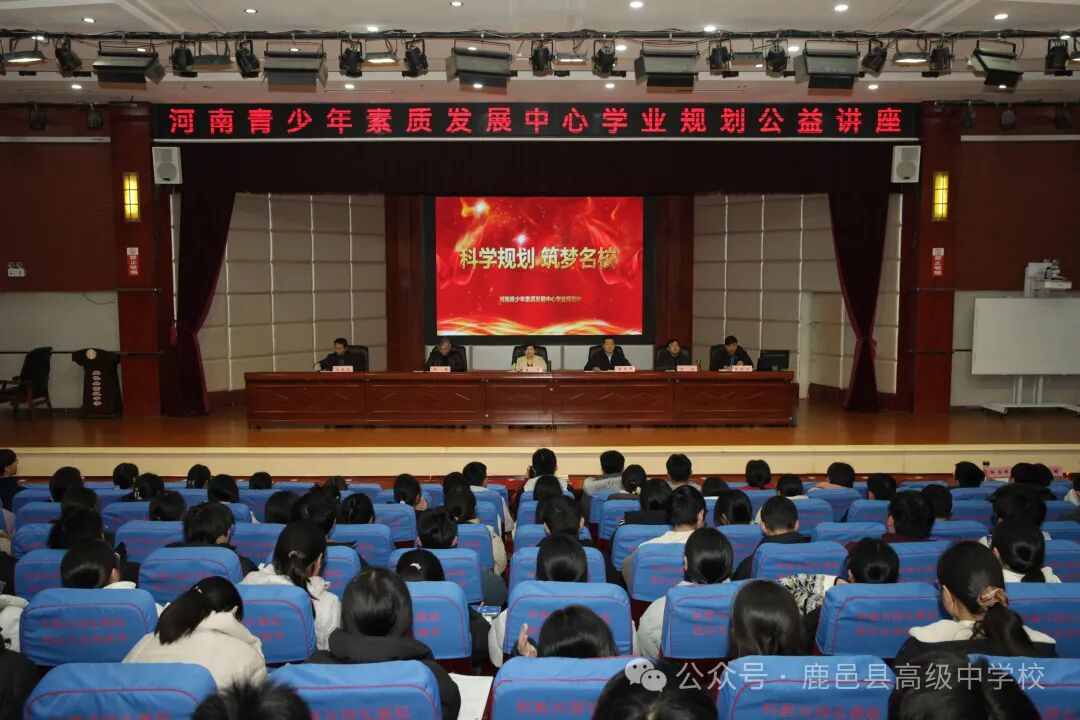 2026年3月17日,鹿邑县高级中学举行河南青少年素质发展中心“科学规划,筑梦名校”学业规划公益讲座。河南青少年素质发展中心生涯规划处处长、高考项目总负责人铁岩,国际处处长、河南省人才集团韩国留学项目代表孙鹏,鹿邑县慈善总会副会长闫冬,学校党委书记梁宗印,副校长赵泽宇、马世礼及高三年级师生代表参加讲座。讲座由副校长赵泽宇主持。